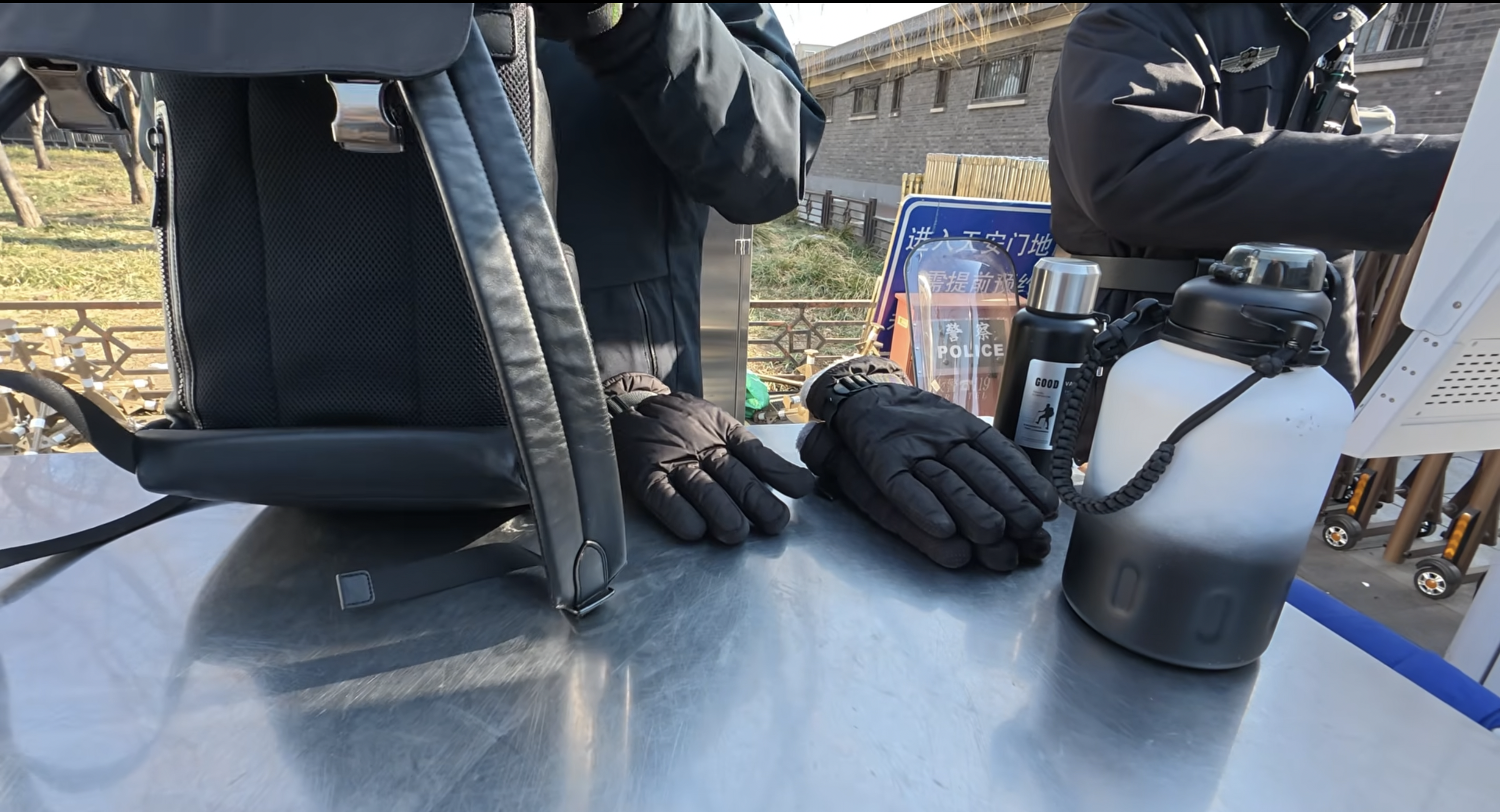 梅大师沿景山前街继续走,又遇到一个警察设的关卡,被告知需要“安检”——搜包,查身份证。在翻包的过程中,警察将其中一份合同拿出来,特意看了看。他说,我也没选择,我不能说不给你看,没用嘛。