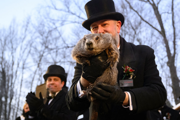 2日上午,宾州庞克苏托尼小镇Gobbler’s Knob举办一年一度的土拨鼠日仪式(Groundhog Day),数千名观众到场观看。菲尔被从温暖的洞穴里拉出来后,看到自己的影子,这意味着未来还有六周的冬季天气。