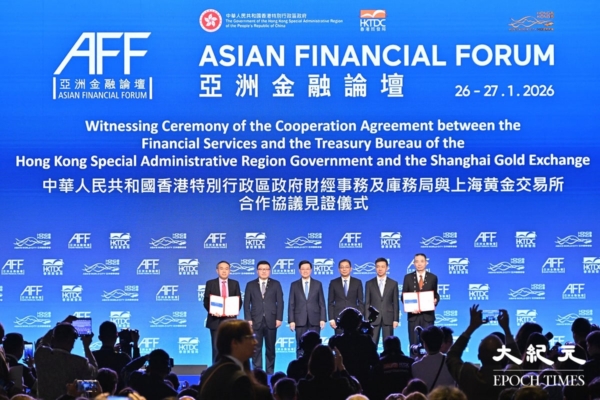 【大纪元2026年01月29日讯】当国际金价持续走高、避险资产需求居高不下之际,1月26日,香港财经事务及库务局与上海黄金交易所签署黄金合作协议,宣布推动香港建设国际黄金交易市场及黄金中央清算系统。