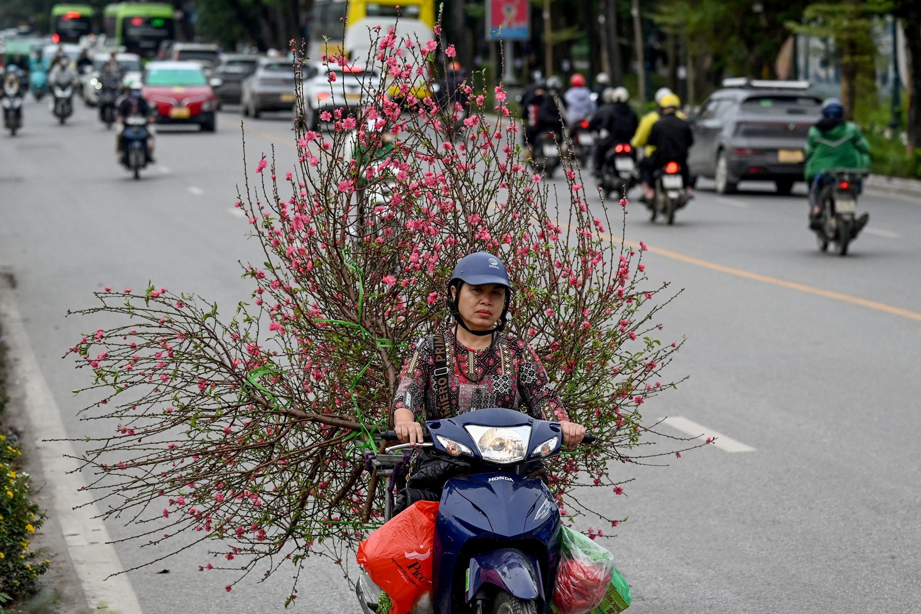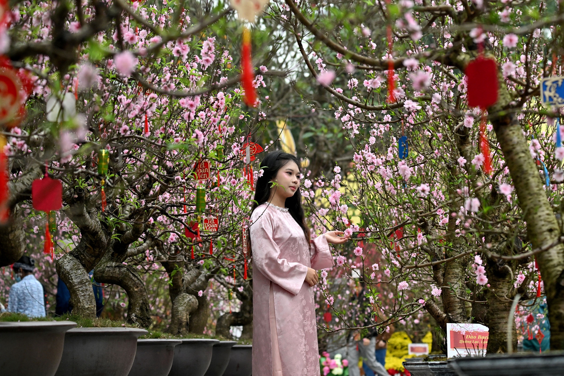 中国新年是越南的法定假日,放假5天。越南人通常从黄历腊月初就开始为过年做准备,置办年货、供品,还要打扫、装饰房间,买年画、贴春联等。承载好运祝福的花更是不可或缺,对于越南人而言,新年必备的三项装饰品为桃花、金橘盆景以及五果盆。