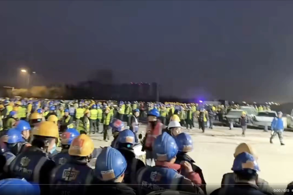 据网络流传的视频显示,近日中国各地讨薪工人纷纷围堵公司、工厂及工地大门,有情绪激动的工人爬上楼顶或工地塔吊,以跳楼、跳塔相威胁,试图以命换钱。各地劳动局、信访局和街道等政府接待机构,也挤满了前来维权的讨薪者,场面混乱而绝望。