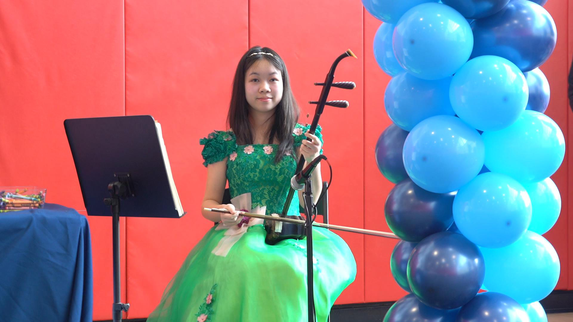 节目的最后,来自大费城华人文化协会的Rosie演奏了二胡。Rosie来自中国广东,八岁起开始学二胡,她热爱中国传统文化,即将就读宾大。她的演奏令整个大厅变得非常宁静,人们都在专注的聆听,沉浸在悦耳动听的二胡声中。演奏结束后掌声一片。