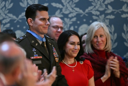 在国情咨文演讲期间,川普总统向首席准尉埃里克‧斯洛弗(Eric Slover)颁发美国最高军事荣誉——国会荣誉勋章。斯洛弗在深入委内瑞拉抓捕马杜罗的突袭行动中受伤。
