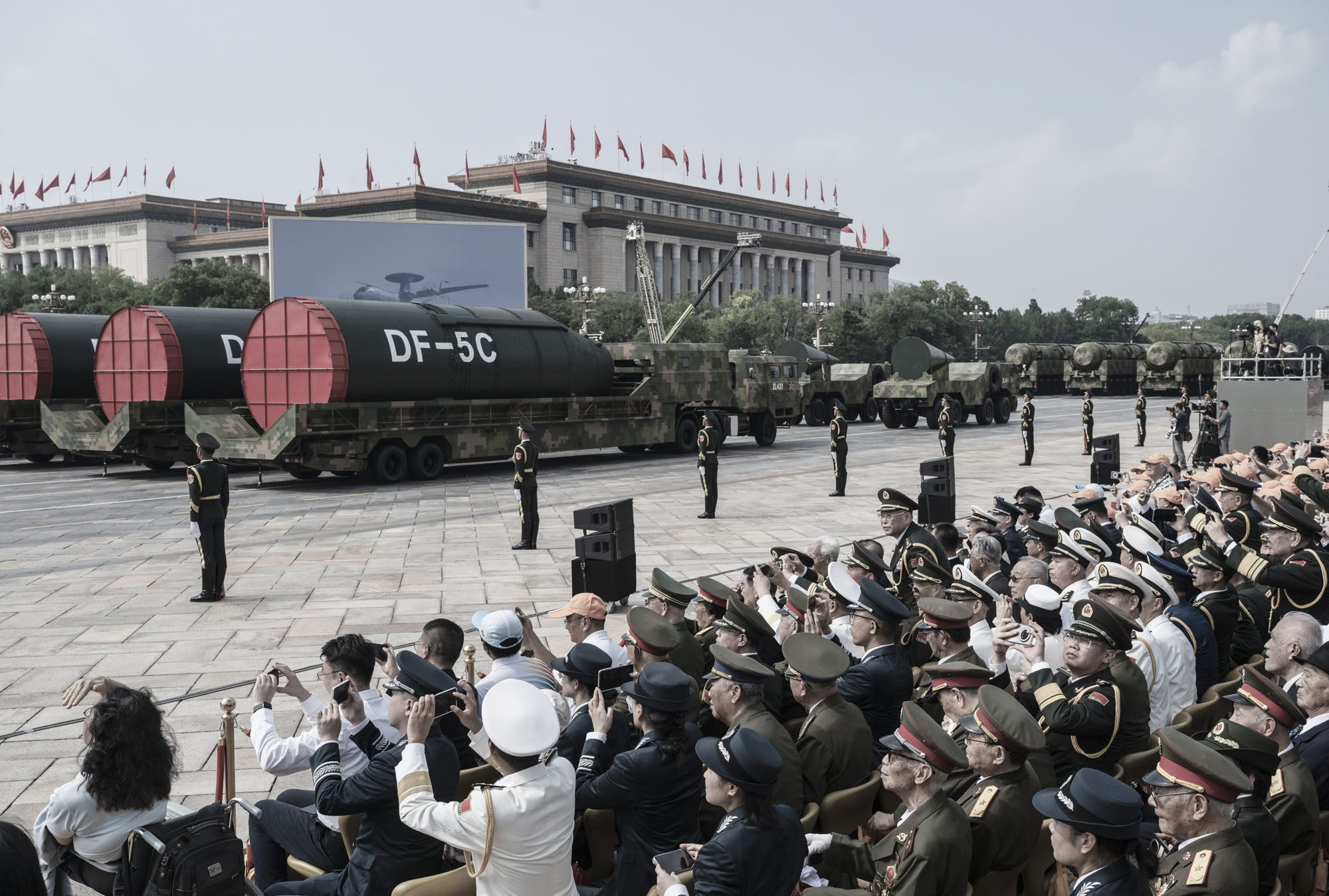 2025年9月3日,中共的东风-5C(DF-5C)陆基洲际导弹出现在北京的阅兵式上。(Kevin Frayer/ Getty Images)