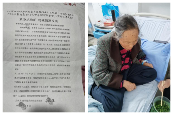 【大纪元2026年03月14日讯】(大纪元记者李熙采访报导)四川省珙县访民余仲堂妻子,于2024年因身体不适由其子开车前往医院途中,被政府雇用来跟监的人追尾造成交通事故,导致余仲堂妻子心衰疾病加重,而应负全责的肇事方至今一分钱未赔。