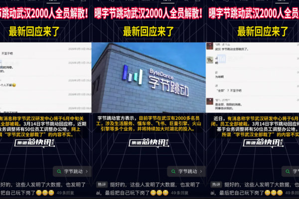 连日来,多张社交媒体聊天截图在中国网络流传,指称字节跳动武汉研发中心约两千人将于6月中旬被整体遣散。相关消息迅速在科技行业扩散,引发关注。