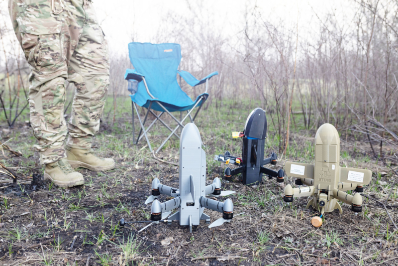 2026年3月31日,在乌克兰哈尔科夫展示的乌克兰制造的拦截型无人机。(Nikoletta Stoyanova/Getty Images)