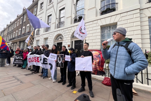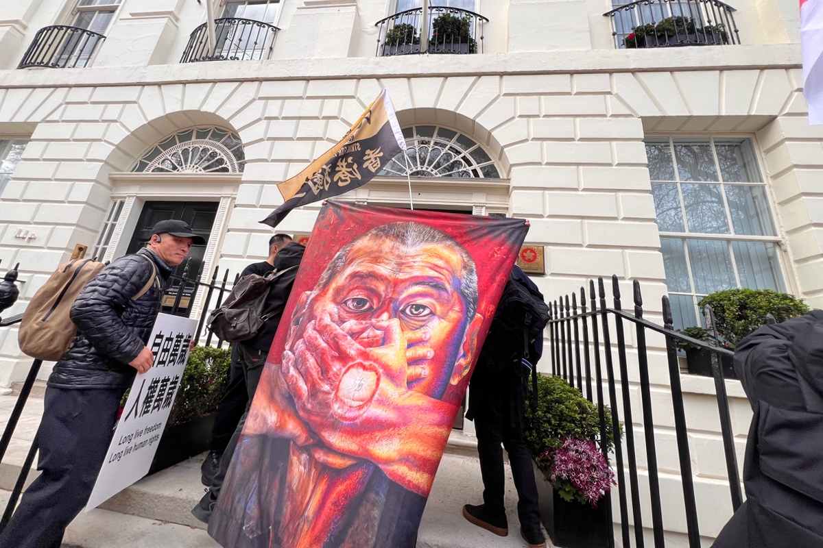 【大纪元2026年04月06日讯】(大纪元记者毕拿英国报导)香港驻伦敦经济贸易办事处(经贸办)职员卷入间谍案,涉及监视当地的香港社运人士,遭英国当局动用国安法起诉,引起对港府及中共跨境镇压的关注。多个公民团体上周六(4日)在经贸办外示威,主张英国政府应取缔及关闭经贸办,并表达“释放黎智英”、“自由香港”等诉求。