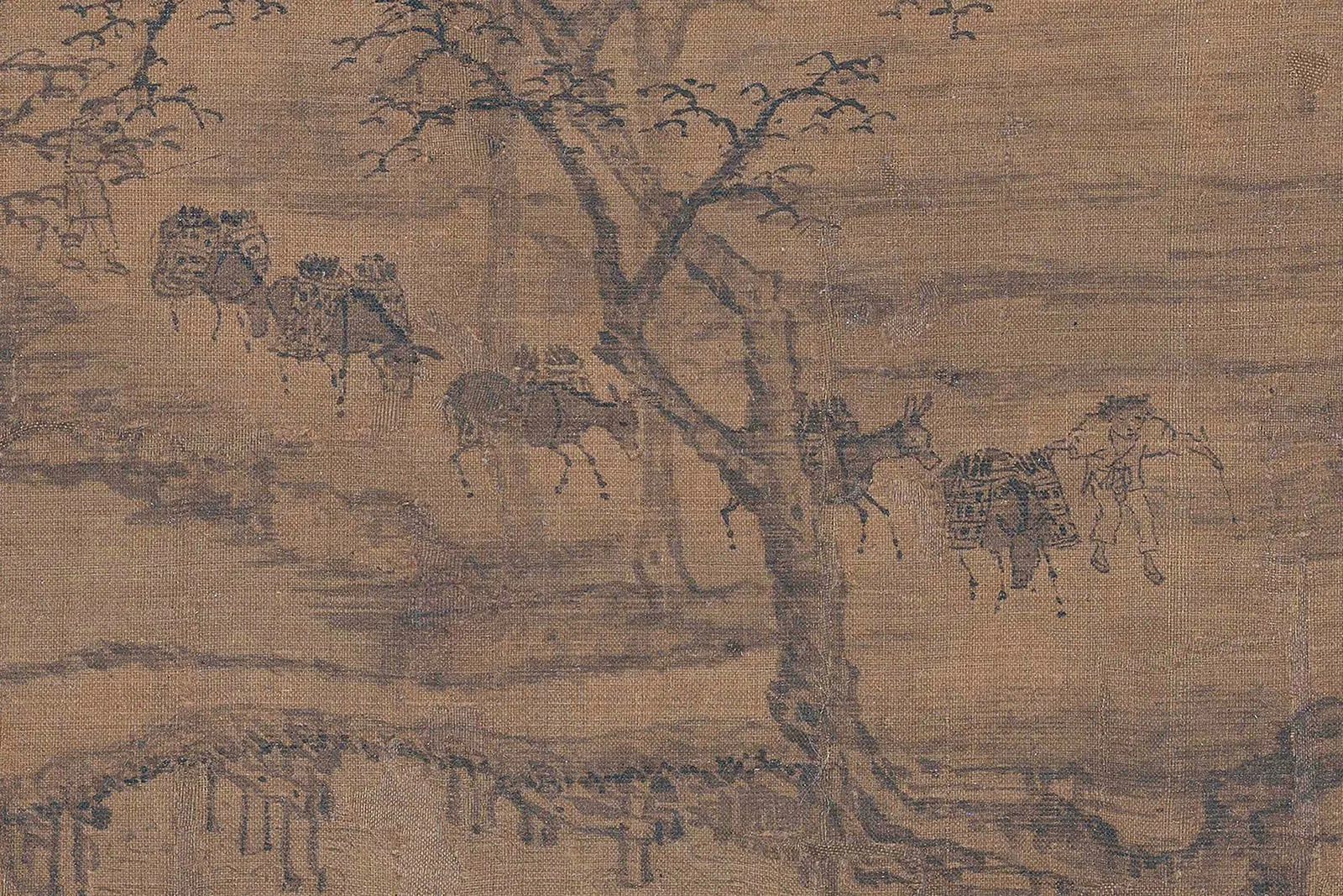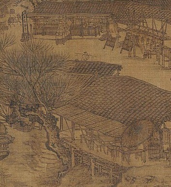 让我们聚焦到一展开画卷的汴河边,第一条村路上。画家一开卷,画了驮着木炭袋的驴子队,这点出了清明节的时序,交待了时空背景。古代寒食节禁火,其后的第二天(或第一天)就入清明节气,这时是春天取榆柳之火举新火的日子。驴子驮着春天的火炭入城,给汴京人们点燃新火,和天地节气一起启动清明的时序。