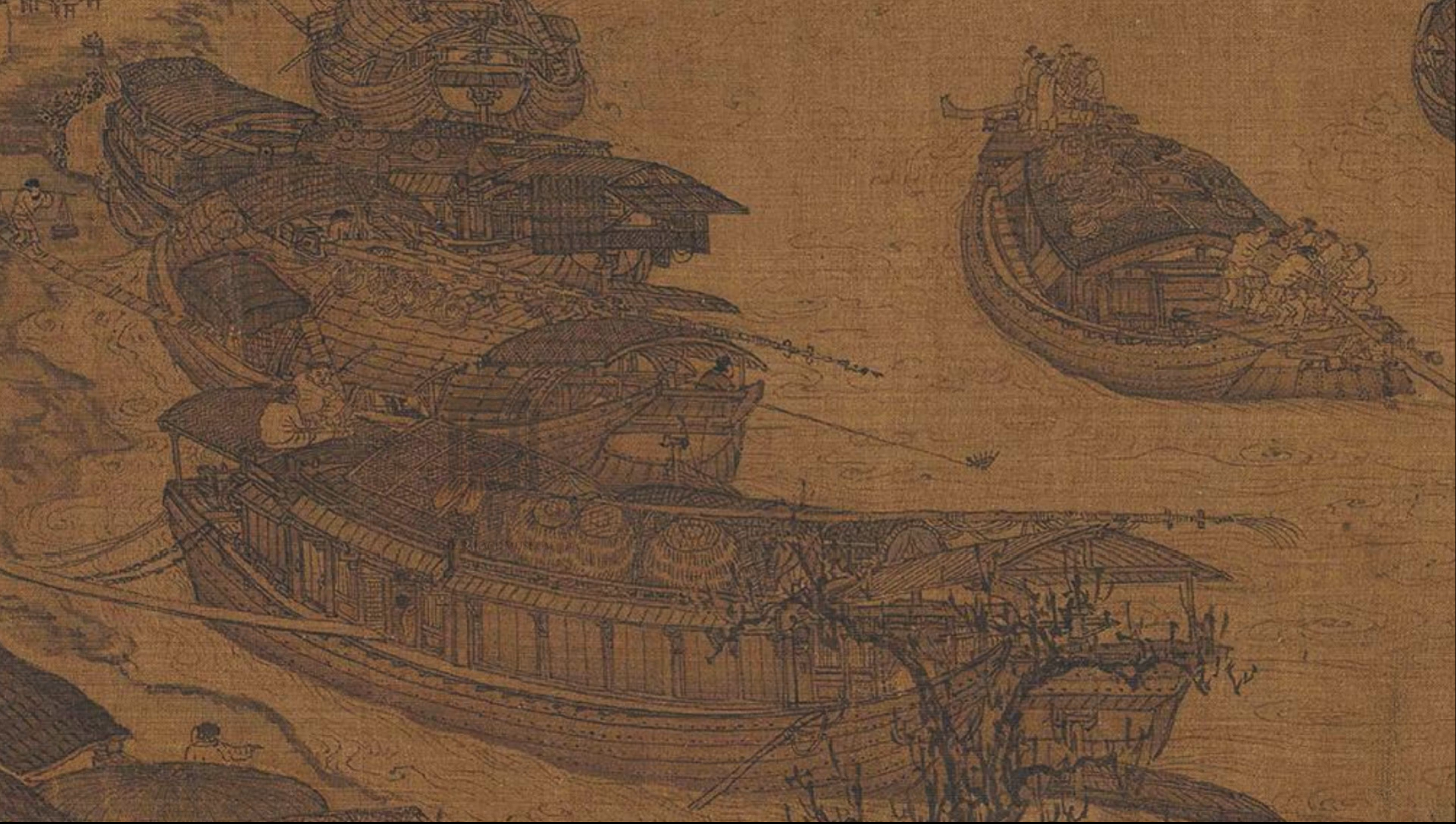 张著之跋云张择端喜画“舟车、市桥、郭径”,在界画中“别成家数”。于《清明上河图》中我们看到已绝迹九百年的虹桥,汴河中宋代的舟楫漕运之船,形态出色醒目,丁铆绳结和配件历历在目,成了本画中不能忽视的、赋有重任的标志性存在。