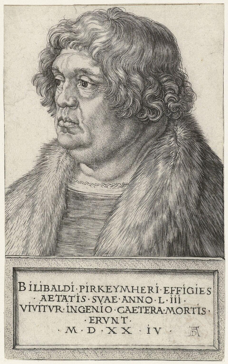 此时,丢勒已造访过意大利,不仅带回了素描与绘画技法的新发展,还引入了古希腊先哲柏拉图与古罗马建筑家维特鲁威的著作。纽伦堡日益兴盛的人文主义运动,以及丢勒挚友——学者兼翻译家威利巴尔德‧皮尔克海默(Willibald Pirckheimer)的藏书,都激发了丢勒的求知欲。从手边丰富的希腊文、拉丁文及希伯来文典籍中,丢勒受到启发,将这些重新发掘的智慧融入版画,使之传播到意大利以外的北欧各地。