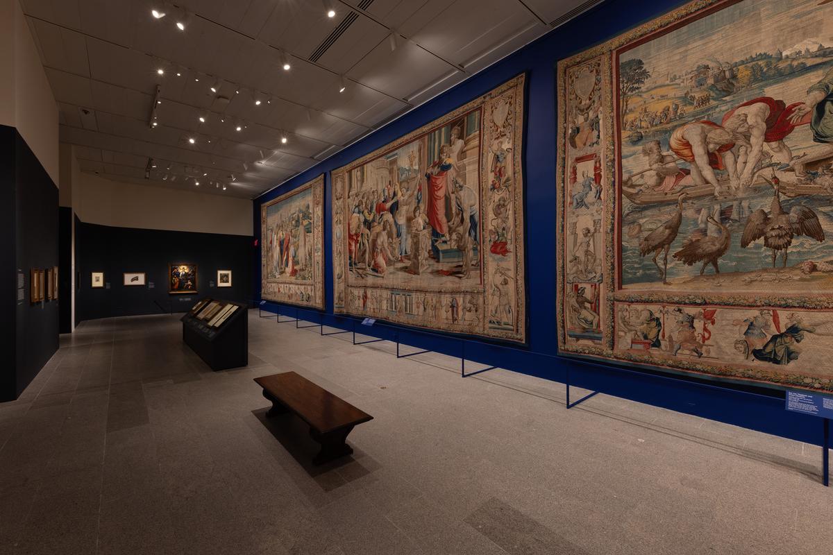 由于造价极昂贵,这些挂毯的耗资一度令教廷财政陷于困境。因其视觉构思精妙,各国王室相继订购“副本”。本次展览呈现的三件工艺精湛、保存完好的杰作,均来自西班牙国王腓力二世(1527–1598年)的私人收藏,这也是该批珍品首次离开马德里。